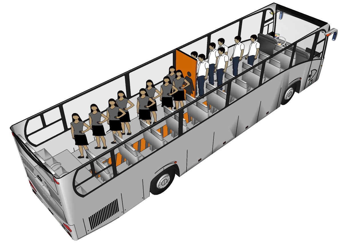 Thay vì giải pháp xe buýt riêng cho phụ nữ chưa thể thực hiện ngay chúng ta nên bố trí lại không gian trên xe buýt sẵn có nhằm hạn chế các “va chạm” theo các hướng như sau: