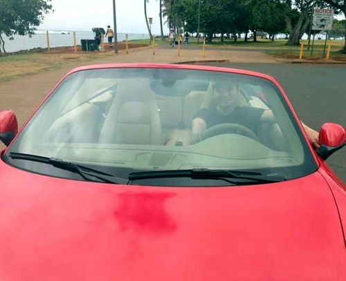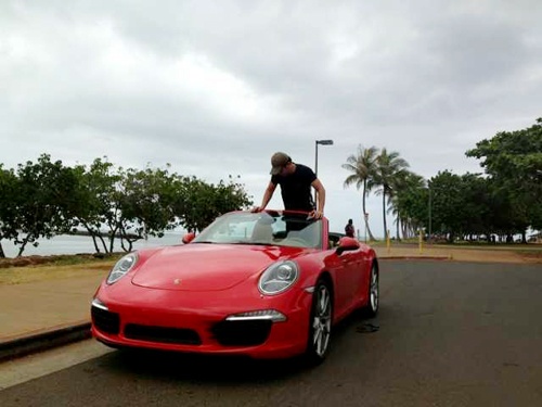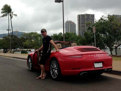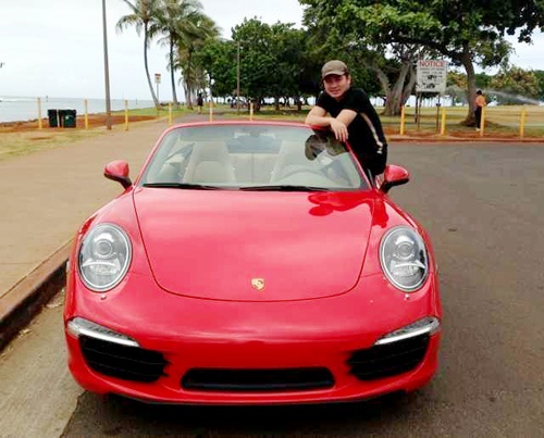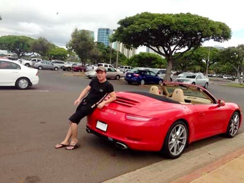 | Trên trang cá nhân, anh vừa chia sẻ một số hình ảnh mới bên chiếc xe mui trần, màu đỏ Porsche với dòng chú thích: "Niềm ước mơ đã thành hiện thực". |