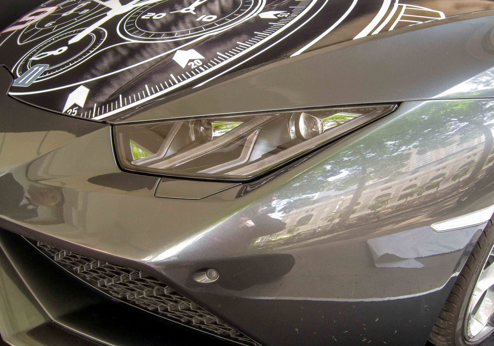 | Sáng 9/6, chiếc Lamborghini Huracan LP 610-4 độc nhất Việt Nam xuất hiện trước một khách sạn trung tâm TP HCM. Siêu xe này đang được dán decal để chuẩn bị cho sự kiện riêng của hãng sắp diễn ra. |