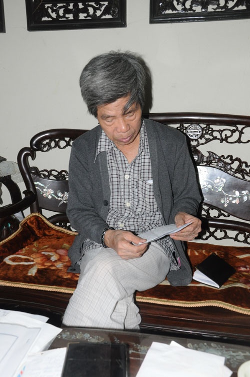 | Ông Lê Văn Viễn ngồi nhà dõi theo tin tức của những người trong gia đình đi tìm kiếm. |