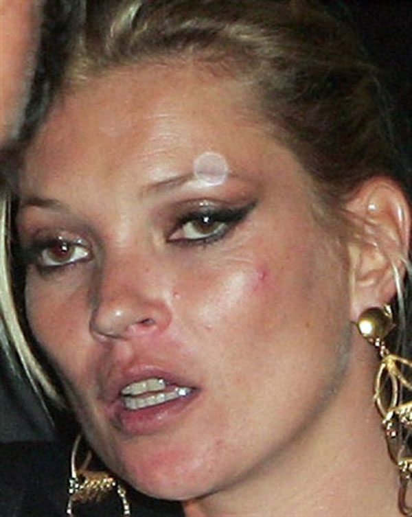 | Kate Moss với làn da vừa có mụn vừa có tàn hương. |