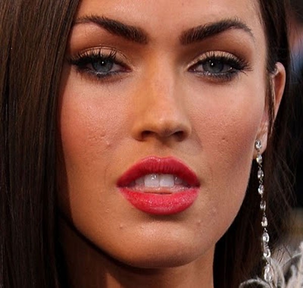 | Megan Fox có làn da hơi rỗ và mụn nhỏ. |