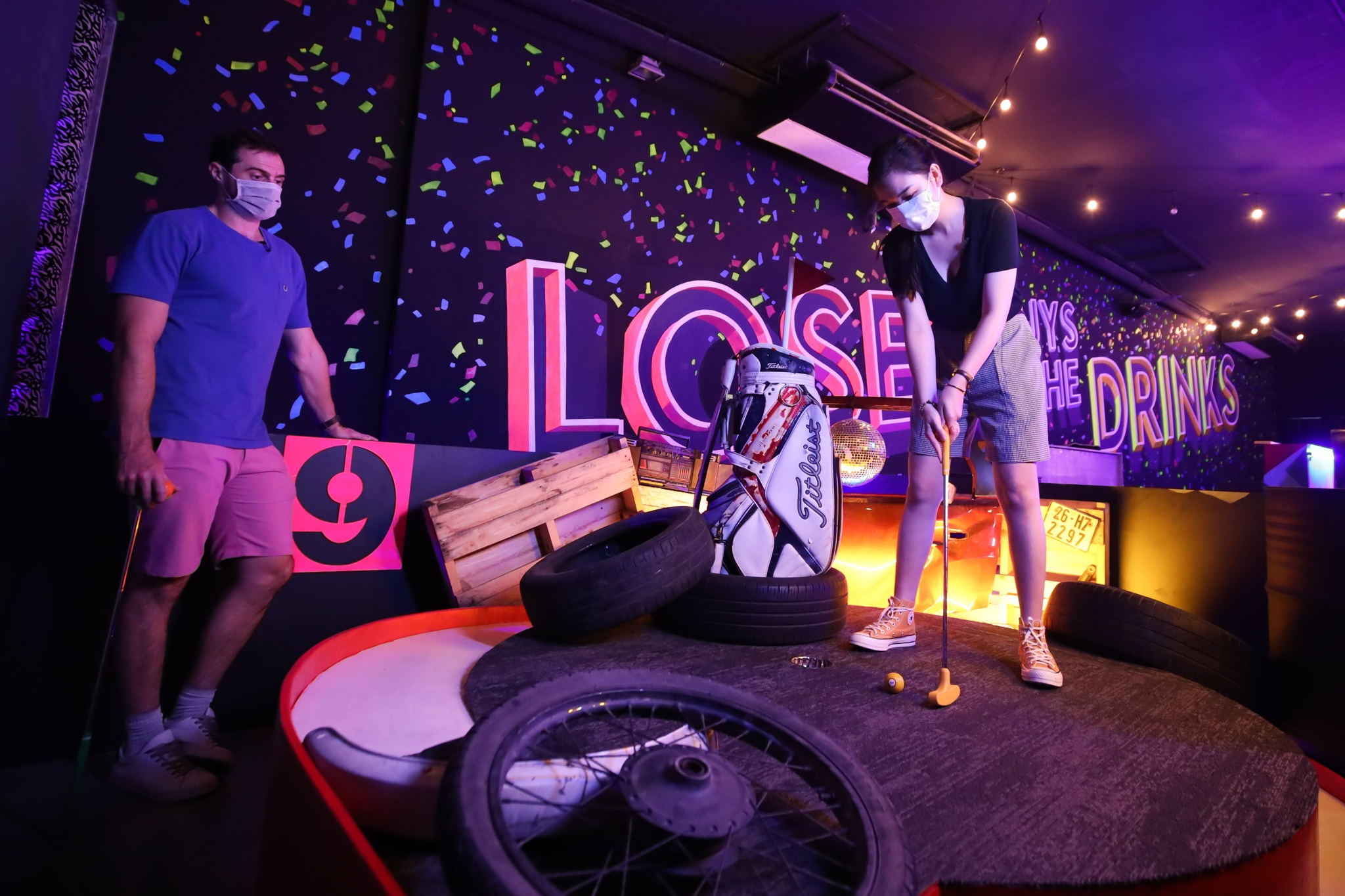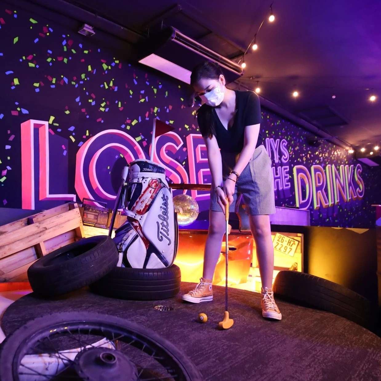 Chơi mini golf ngay tại quán bar là một trải nghiệm mới lạ đối với rất nhiều bạn trẻ tại TP.HCM.