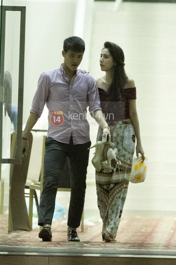 | Ngay sau buổi tối gia đình đi chơi vui vẻ cùng nhau, Công Vinh tháp tùng Thủy Tiên đến một địa điểm quay hình cho một chương trình ca nhạc Tết. |
