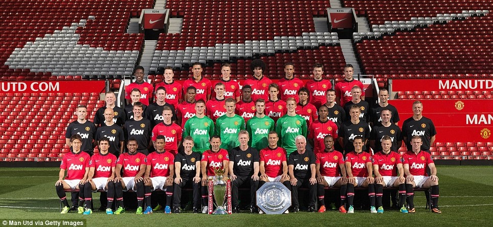 MU vừa tung ra hình ảnh mới nhất về đội bóng với sự góp mặt của hai tân binh Marouane Fellaini và Wilfried Zaha. Song đây cũng là lần đầu tiên sau 27 năm Sir Alex không có mặt trong bức hình của tập thể Quỷ đỏ. Người ngồi vào vị trí quen thuộc của "Ngài máy sấy tóc" là tân HLV David Moyes. |