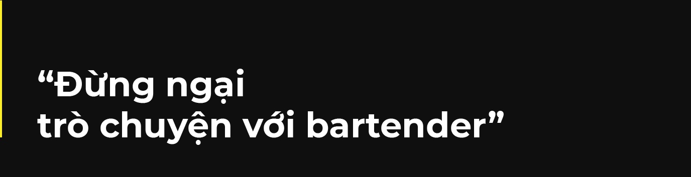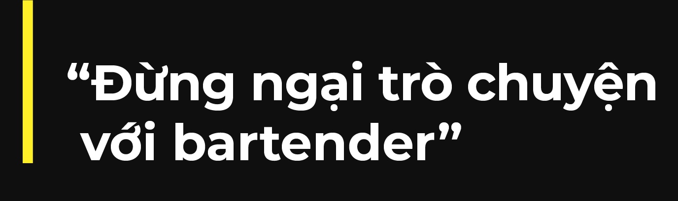 "Đừng ngại trao đổi với người pha chế để tìm ra ly rượu đúng sở thích, tâm trạng của bạn. Các quán bar vốn là một không gian để kết bạn, chia sẻ nên khách hàng hãy cứ là chính mình", cô nói.