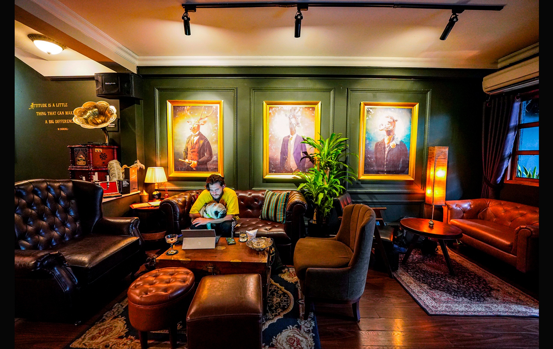 Với cá tính không quá ưa ồn ào và thích phong cách cổ điển, tôi quyết định đến quán bar do Tú Quyên quản lý. Đây là một quán cocktail bar mang phong cách vintage, với nhiều dãy sô pha lớn, quầy bar dài và cách bày trí tạo cảm giác hoài cổ, ấm cúng.