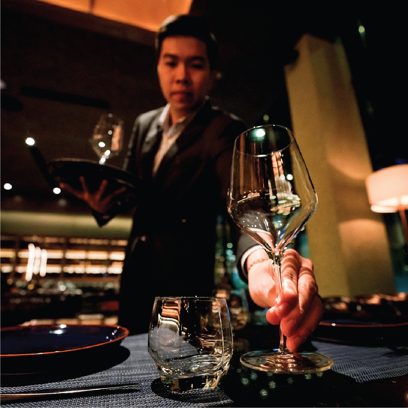 Các món ăn sẽ được đưa lên theo thứ tự, dưới sự quan sát từ nhân viên phục vụ. Thời gian chờ lý tưởng giữa các món ăn là 6 phút và 3 phút với các loại đồ uống như cocktail, rượu...