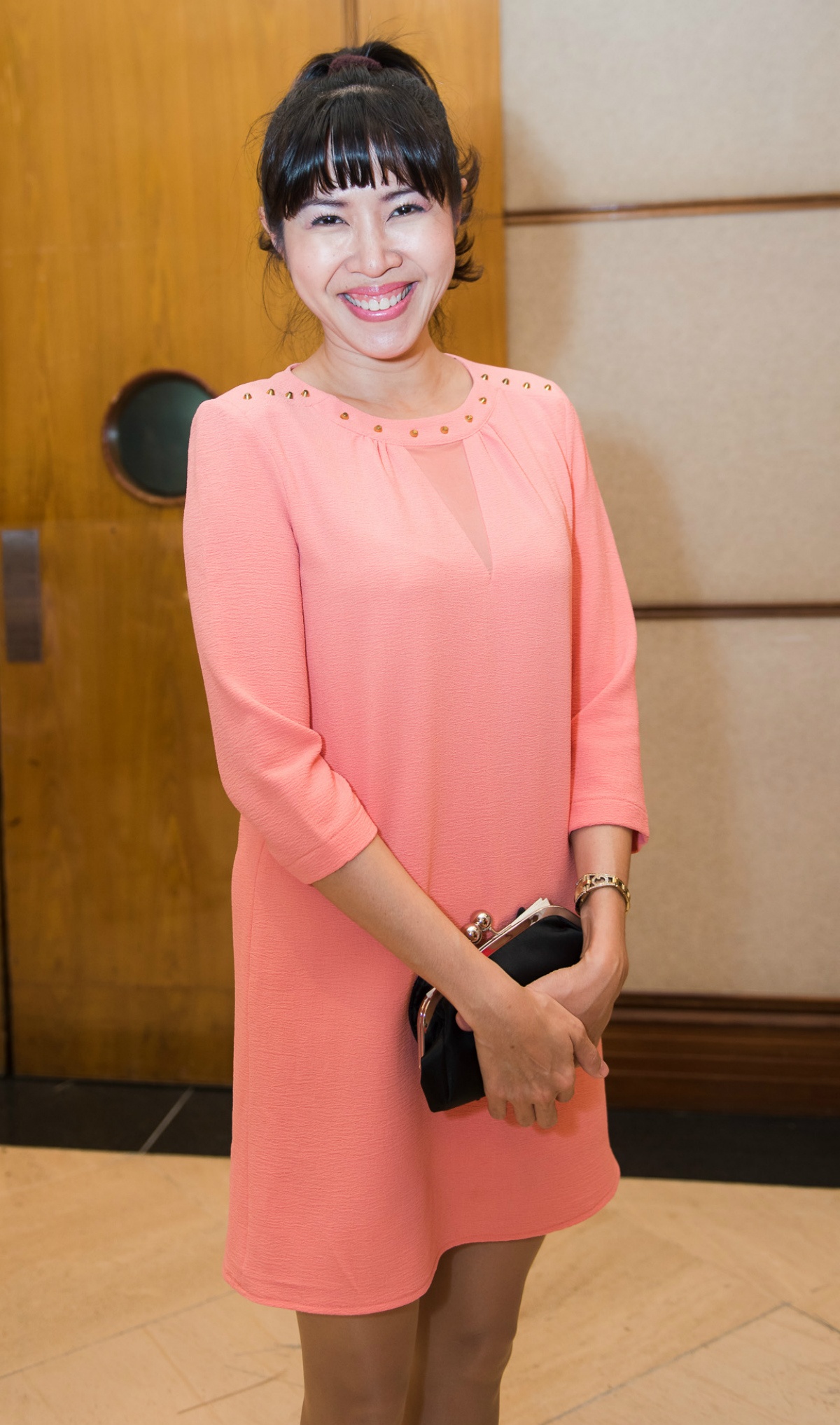 MC Quỳnh Hoa rạng rỡ đến chung vui cùng đàn em. Chị vào HTV trước Hồng Phượng và sau đó cả 2 trở nên thân thiết nhờ làm chung chương trình. |