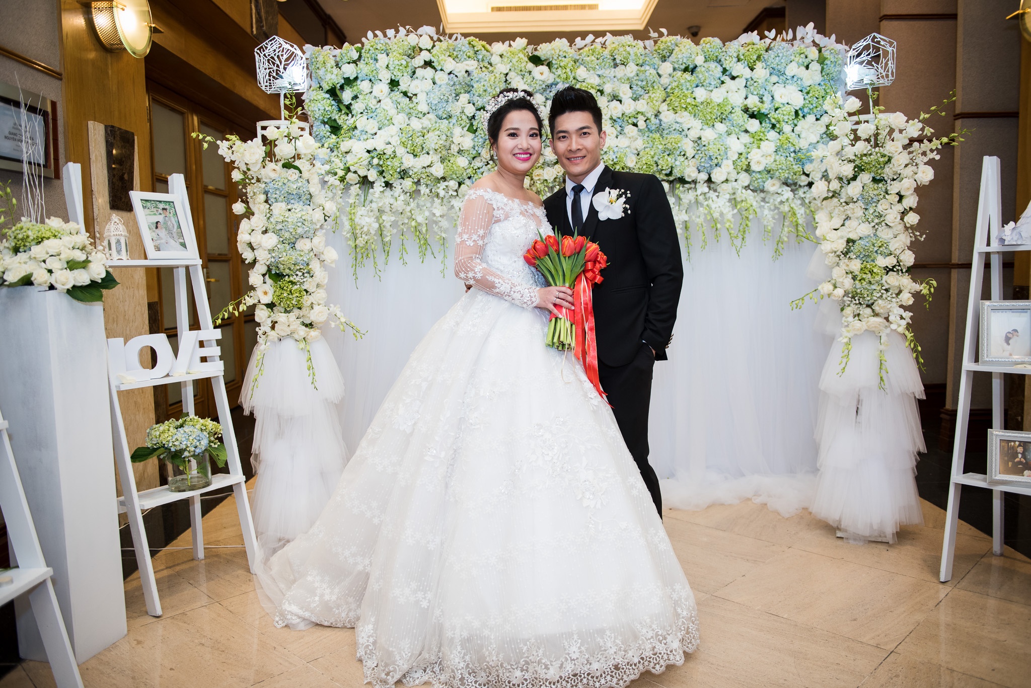 Lễ cưới của MC Hồng Phượng và nghệ sĩ xiếc Giang Quốc Cơ diễn ra tối 27/2 tại TP HCM. Khách mời chỉ gồm 250 người, là họ hàng và bạn bè thân thiết của cô dâu chú rể. |