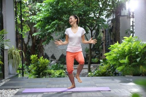 | Lan Phương duy trì tập thể dục mỗi ngày để đảm bảo sức khỏe. |