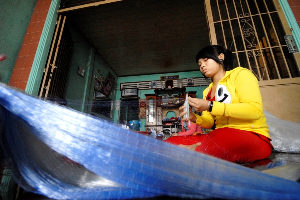 Ở làng nghề đan các loại lưới cá, tôm tại Thơm Rơm, quận Thốt Nốt (TP. Cần Thơ) cũng đang nhộn nhịp suốt ngày đêm. |