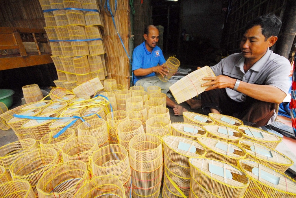 Anh Lê Văn Hải, gia đình có hơn 40 năm theo nghề gia truyền sản xuất lọp tép ở phường Thới Long, cho biết: Gia đình có 5 người, cứ vào tháng 2 đến 3 là bắt tay đan lọp để đến mùa lũ về là có hàng giao cho khách. Trung bình một mùa gia đình sản xuất khoảng 15.000 cái. |