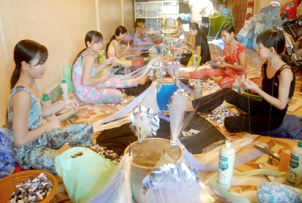 Làng sản xuất lưới nơi đây có hơn 30 hộ làm nghề với gần 400 lao động sản xuất thường xuyên, được xem là lớn nhất ở miền Tây. |