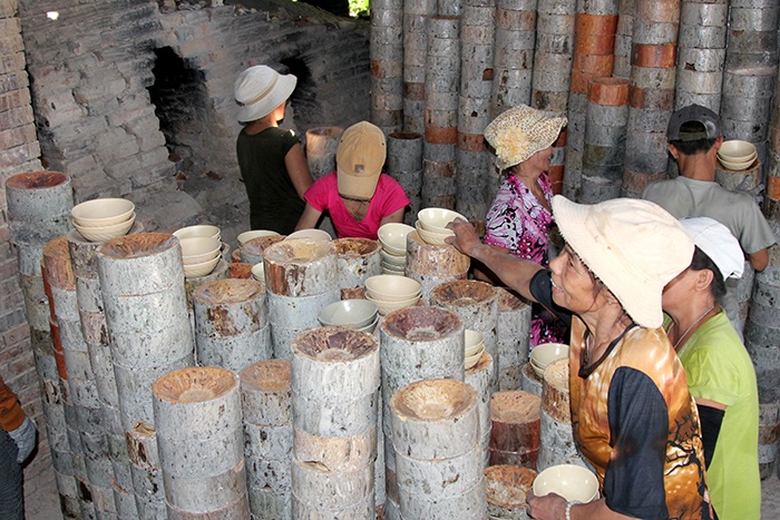 | Làm gốm bằng lò củi truyền thống đòi hỏi thợ phải giỏi nghề và có kinh nghiệm mới canh đúng lửa cho ra những sản phẩm gốm có màu sắc đẹp. Thời gian nung một mẻ gốm sứ là 3 - 5 ngày. |