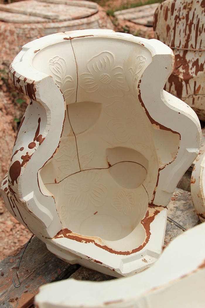 | Một mẩu khuôn đúc chậu hoa theo đơn hàng của một công ty nước ngoài, gốm xuất khẩu mẫu mã phải dựa theo thị hiếu của khách hàng chứ không do các nghệ nhân hoặc thợ gốm ở đây sáng tác. |