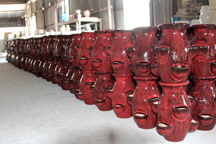 | Một mẫu chậu hoa thành phẩm, đây là sản phẩm làm theo đơn hàng từ Úc , với giá xuất xưởng là 80.000 đồng/chậu. Hàng tháng một cơ sở sản xuất gốm cho ra lò từ 10.000 – 20.000 sản phẩm xuất khẩu, thị trường chủ yếu là châu Âu. |