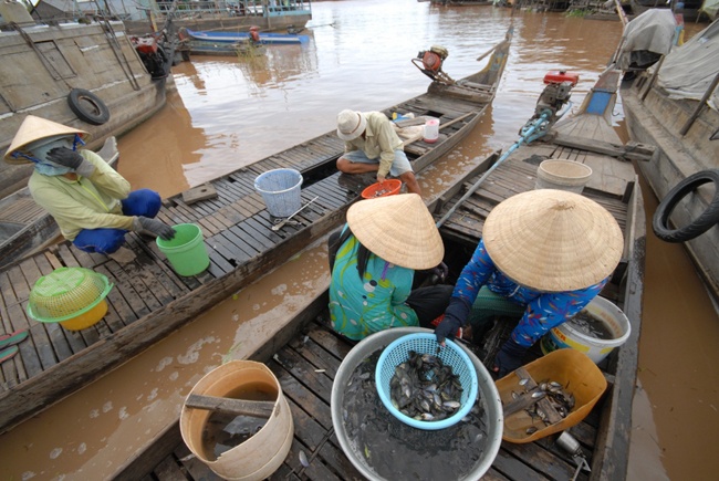 Lũ càng lên cao thì ghe tàu càng tấp nập cập bến làng nghề cá khô Khánh An, để chở cá về và nhận hàng chuyển đi tiêu thụ. Mùa lũ cũng là thời điểm người dân làng cá khô này hốt bạc.