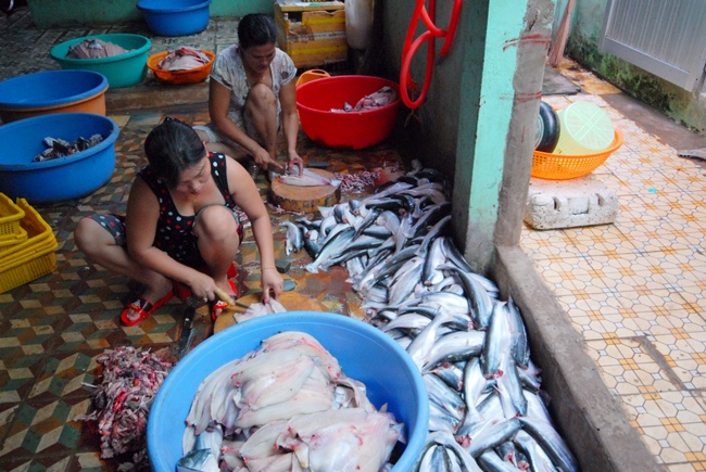 | Ghe thuyền tấp nập vận chuyển cá về. |