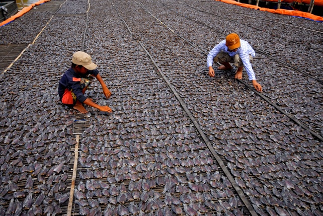 Khô cá đồng ở làng biên giới Khánh An không chỉ được thị trường trong nước "ưu ái", mà còn là mặt hàng xuất khẩu mang lại lợi nhuận cao.