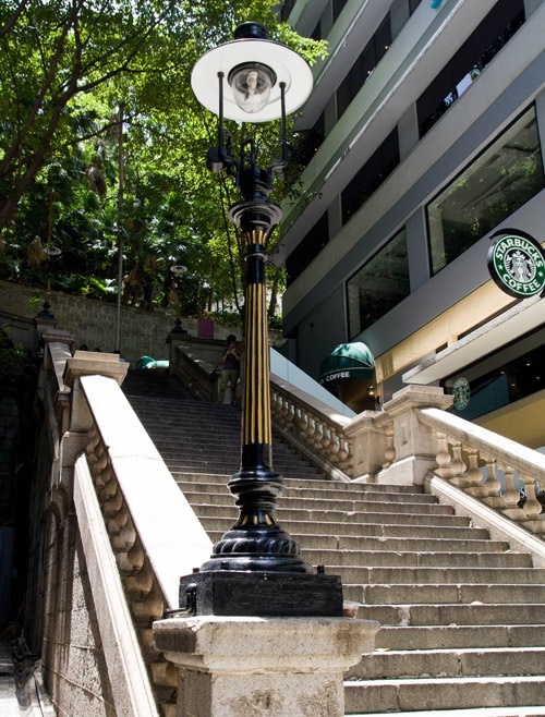 | Cầu thang cổ với hệ thống đèn thắp sáng bằng gas duy nhất tại Hong Kong. |