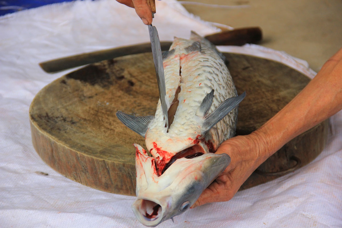 Theo các hộ gia đình ở đây, phải là cá trắm đen, to và nặng từ 3kg trở lên mới kho ngon.