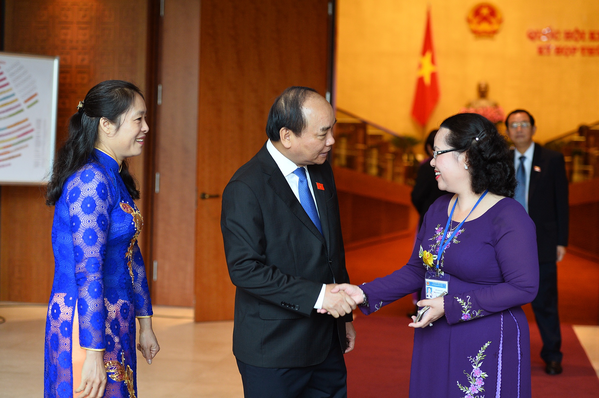 | Phó thủ tướng Nguyễn Xuân Phúc chúc mừng các chị em đại biểu nhân ngày Phụ nữ Việt Nam 20/10. |