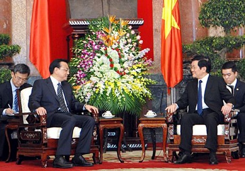 Chủ tịch nước Trương Tấn Sang hoan nghênh những kết quả cụ thể trong chuyến thăm của Thủ tướng Lý Khắc Cường, đặc biệt là việc hai bên nhất trí thành lập 3 Nhóm công tác: Nhóm công tác hợp tác về cơ sở hạ tầng, Nhóm công tác về hợp tác tiền tệ và Nhóm công tác bàn bạc về hợp tác cùng phát triển trên biển trong khuôn khổ Đoàn đàm phán cấp Chính phủ về biên giới lãnh thổ Việt Nam - Trung Quốc; tin rằng những kết quả này sẽ góp phần thúc đẩy mạnh mẽ hợp tác chiến lược giữa hai nước trong thời gian tới…