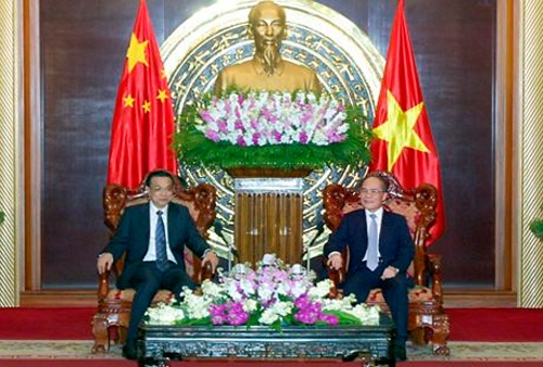 Thủ tướng Lý Khắc Cường nhấn mạnh, quan hệ hai Đảng, hai nước Trung Quốc và Việt Nam là quan hệ truyền thống do Chủ tịch Mao Trạch Đông, Chủ tịch Hồ Chí Minh và các bậc tiền bối cách mạng hai nước dày công vun đắp; khẳng định Đảng, Chính phủ Trung Quốc hết sức coi trọng phát triển quan hệ đối tác hợp tác chiến lược toàn diện với Việt Nam trên cơ sở phương châm 16 chữ và tinh thần 4 tốt; nguyện cùng với Đảng, Nhà nước và nhân dân Việt Nam làm hết sức mình để tiếp tục củng cố và đưa quan hệ hữu nghị và hợp tác Trung-Việt phát triển tích cực, ổn định trong thời gian tới.