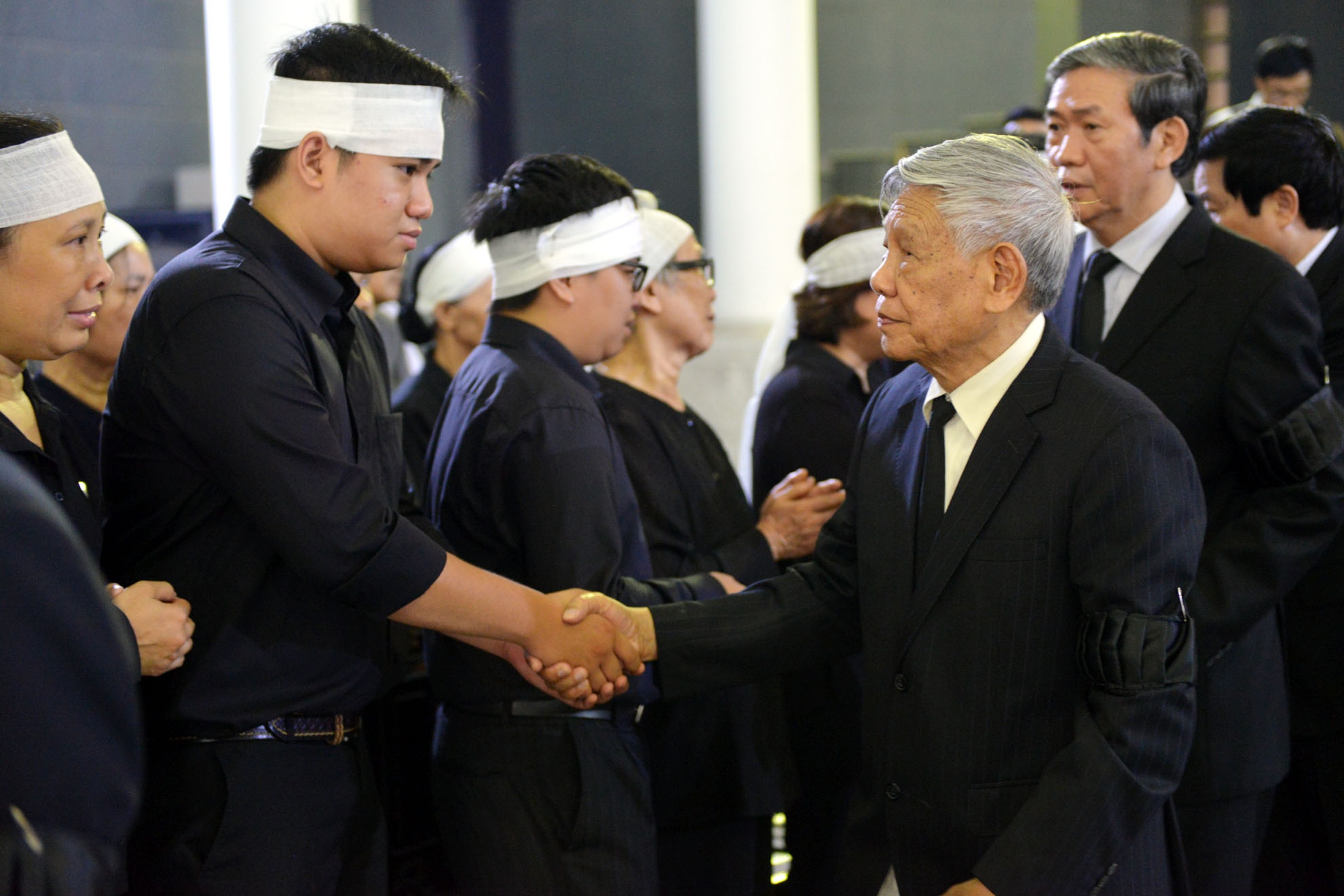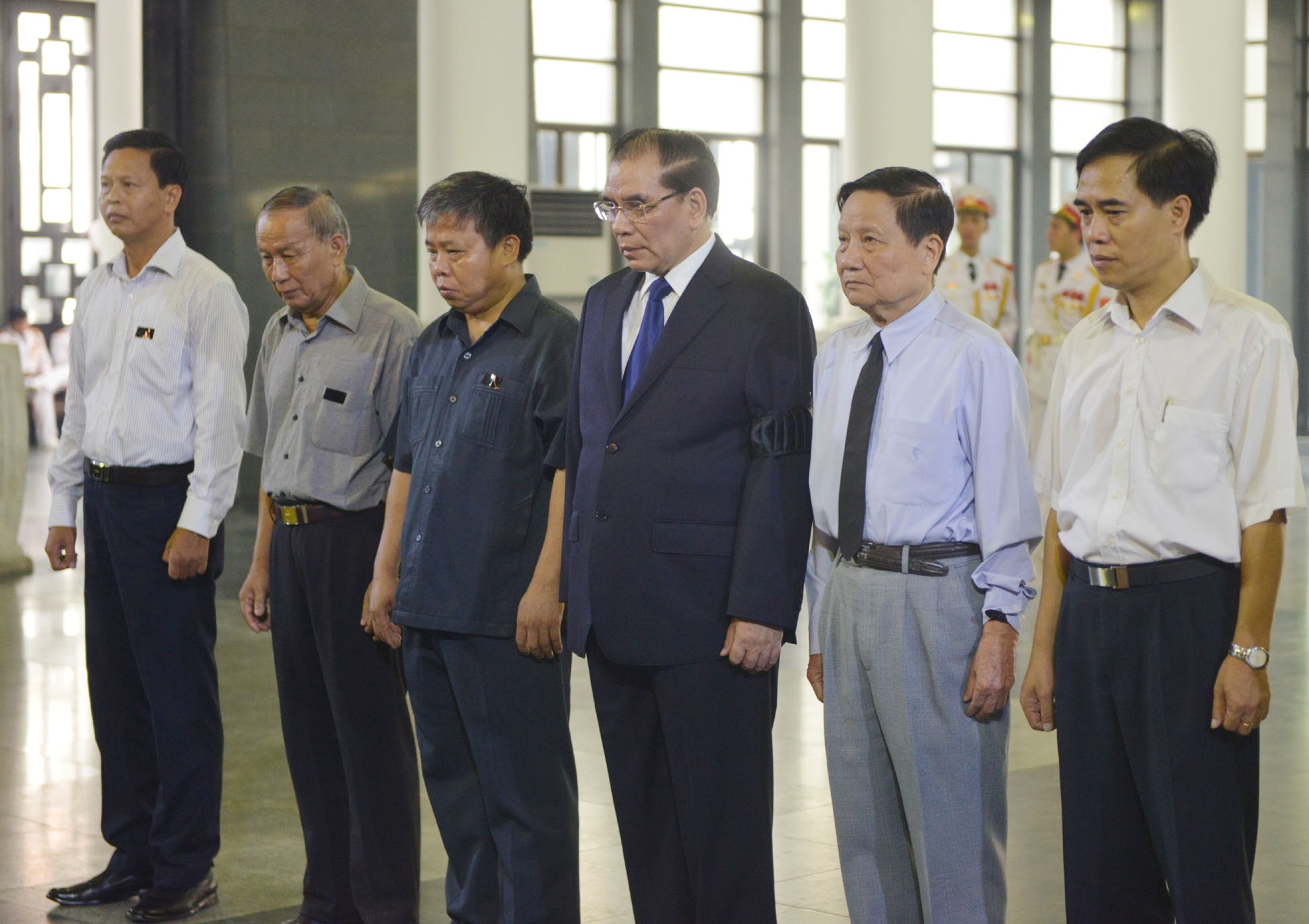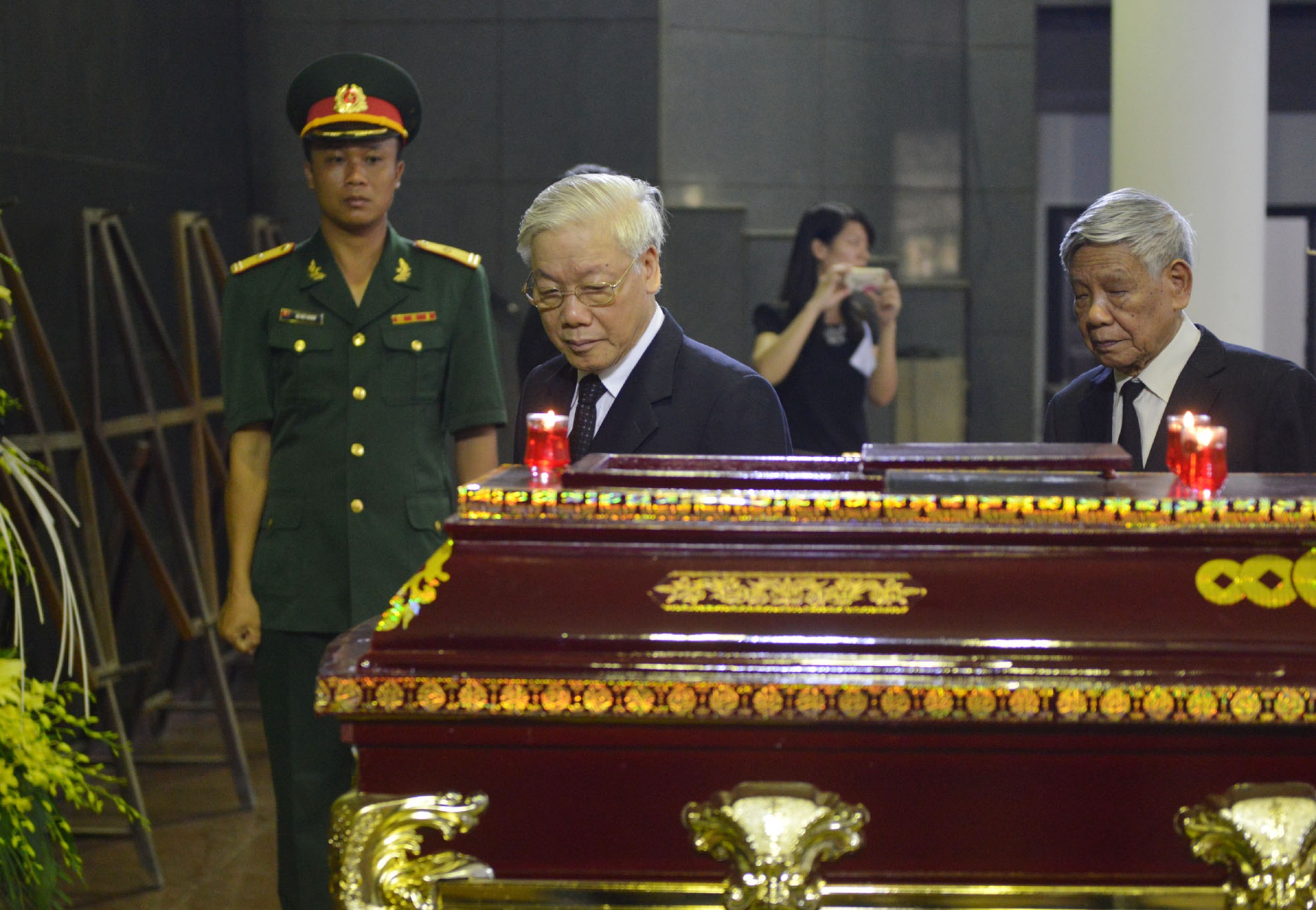 | Nguyên Tổng bí thư Lê Khả Phiêu và Trưởng Ban tuyên giáo Trung ương Đinh Thế Huynh lần lượt chia buồn. |