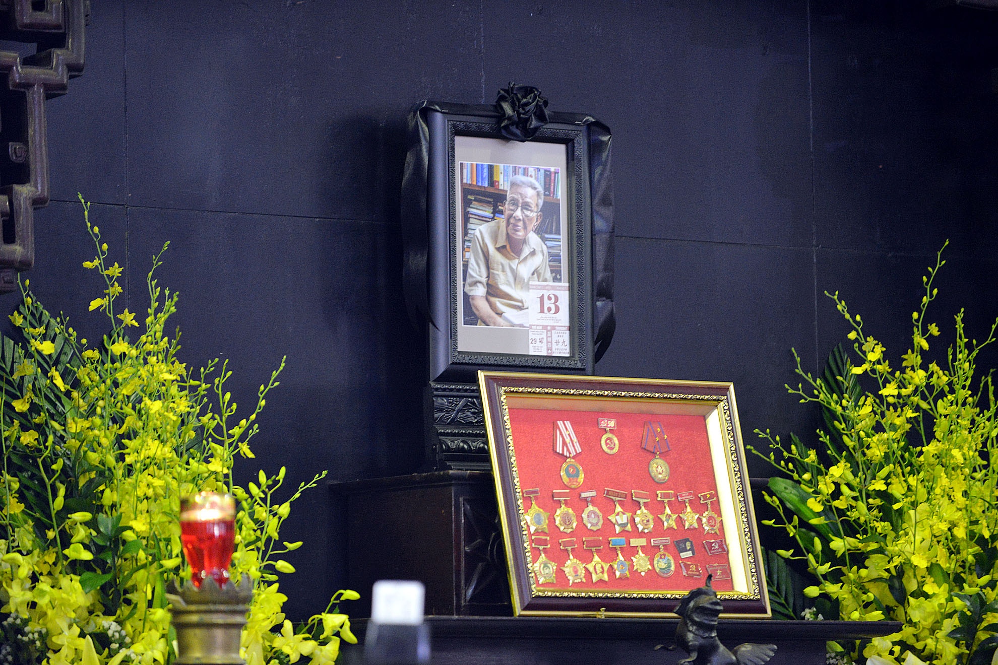 | Nguyên Tổng bí thư Nông Đức Mạnh thắp nén hương tiễn biệt vị cựu học sinh trường Bưởi (nay là THPT Chu Văn An, Hà Nội). |
