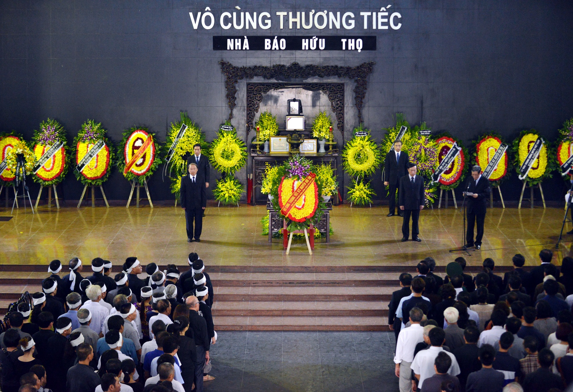 Tổng bí thư Nguyễn Phú Trọng, Chủ tịch nước Trương Tấn Sang, Chủ tịch Quốc hội Nguyễn Sinh Hùng và nhiều lãnh đạo Đảng, Nhà nước đã đến từ biệt nhà báo Hữu Thọ, sáng 14/8.