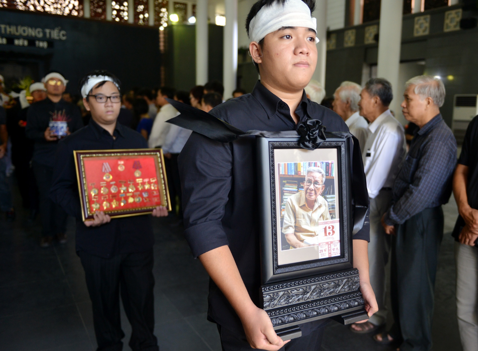Gia quyến nhà báo không kìm được nước mắt khi nhìn mặt ông lần cuối.