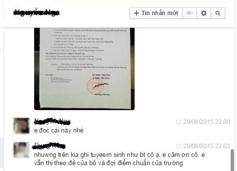 | Để củng cố lòng tin của học sinh, một số người gửi ảnh chụp công văn có dấu đỏ qua mạng. |