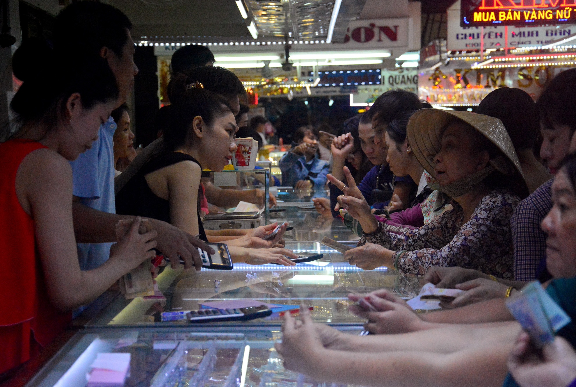 | Chủ tiệm vàng Kim Tuyết cho biết đơn vị này phải huy động lượng nhân viên gấp 4 lần so với bình thường để giao dịch với khách. |