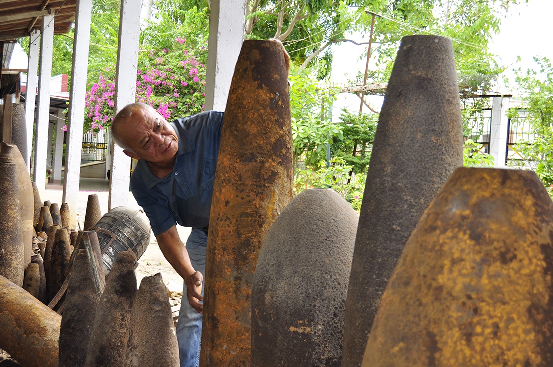 Hiện bộ sưu tập này lên đến gần 300 quả bom đạn lớn nhỏ, có quả cao quá đầu người, nặng 4 tấn. Vì không biết tên kỹ thuật nên ông gọi chúng là bom B52, heo, lu, cá mập và pháo cối, 105 mm, hỏa châu...