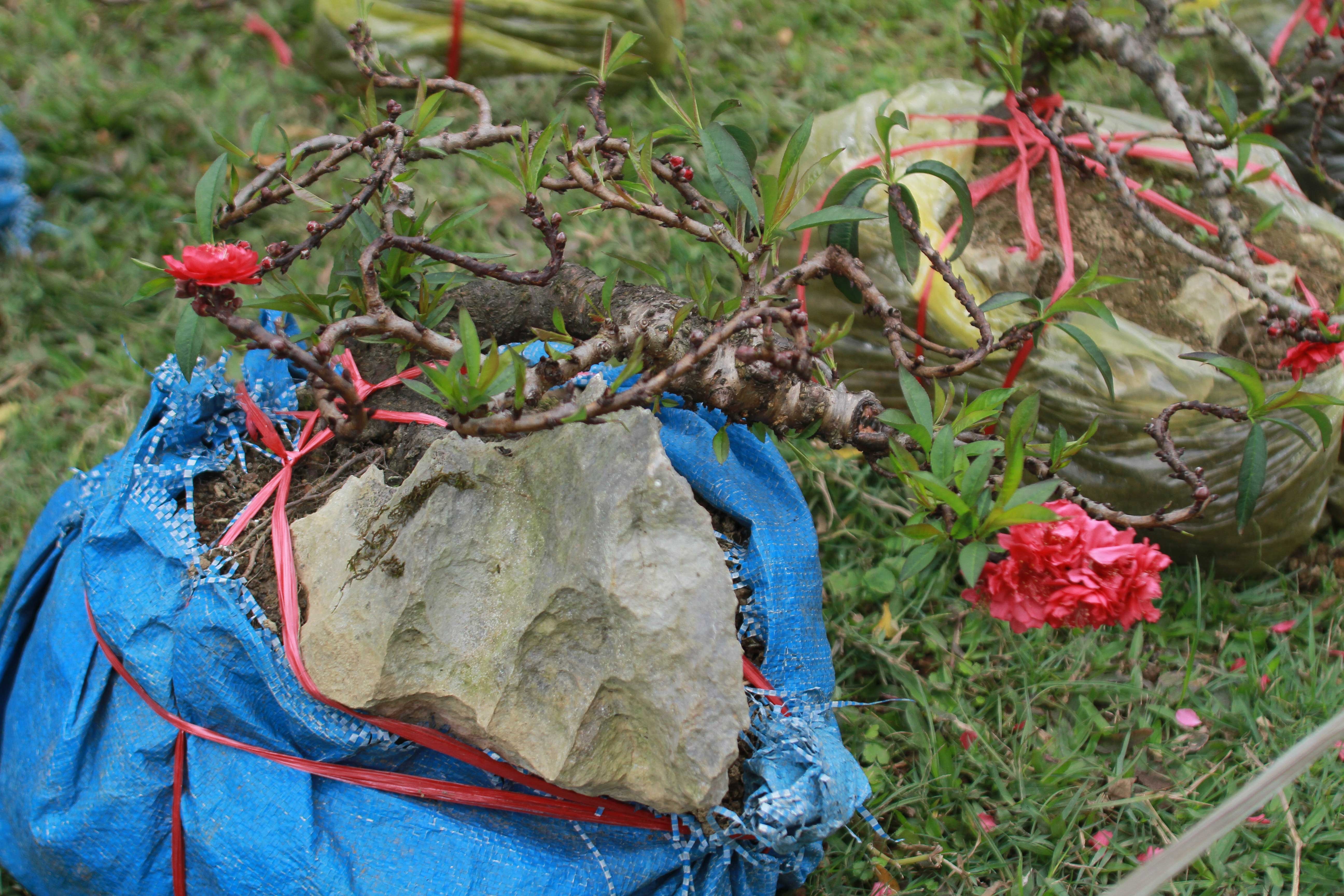 | Cây đào thất thốn mọc trong hốc đá giá 5 triệu đồng. Ảnh: Ngọc Lan. |