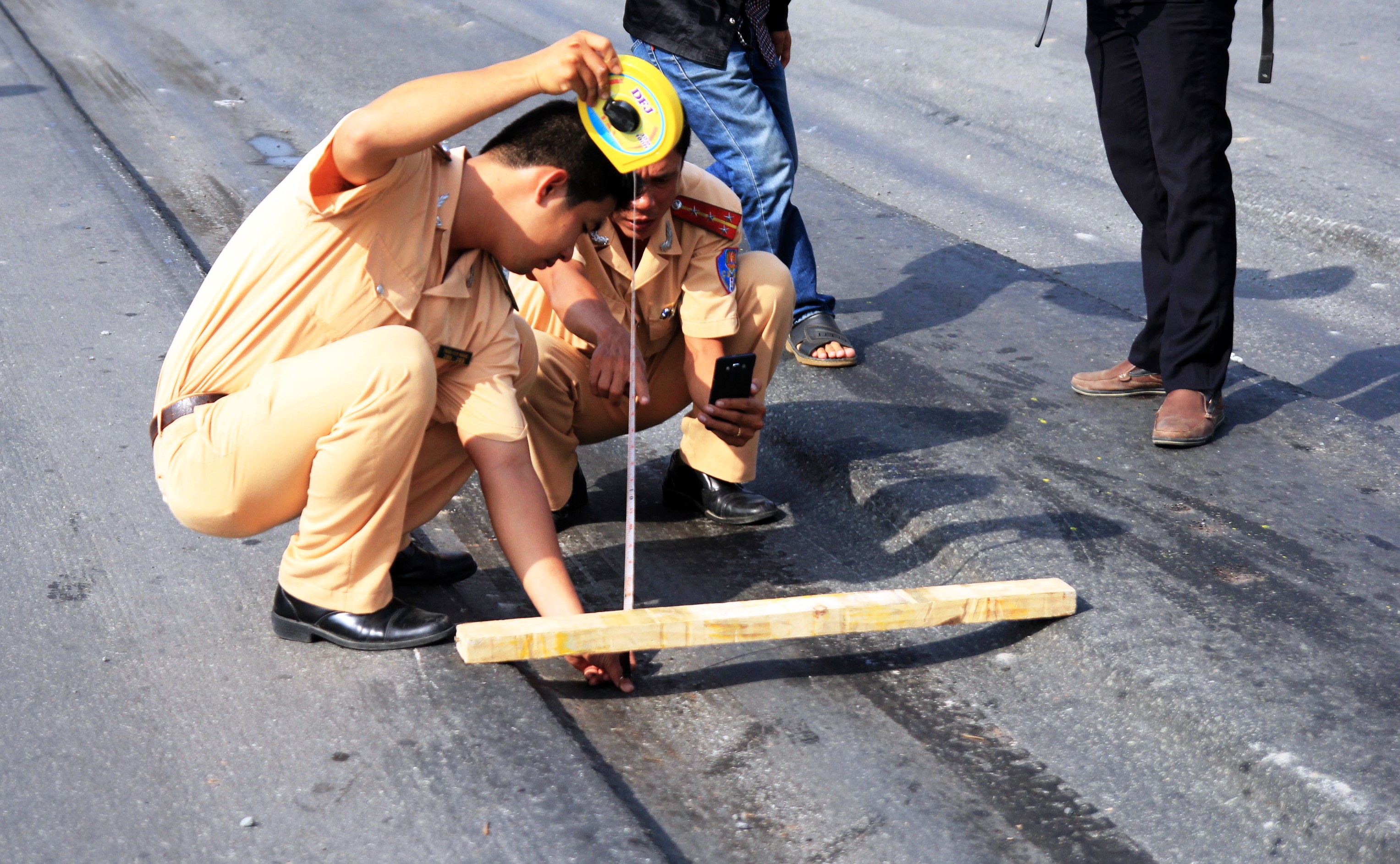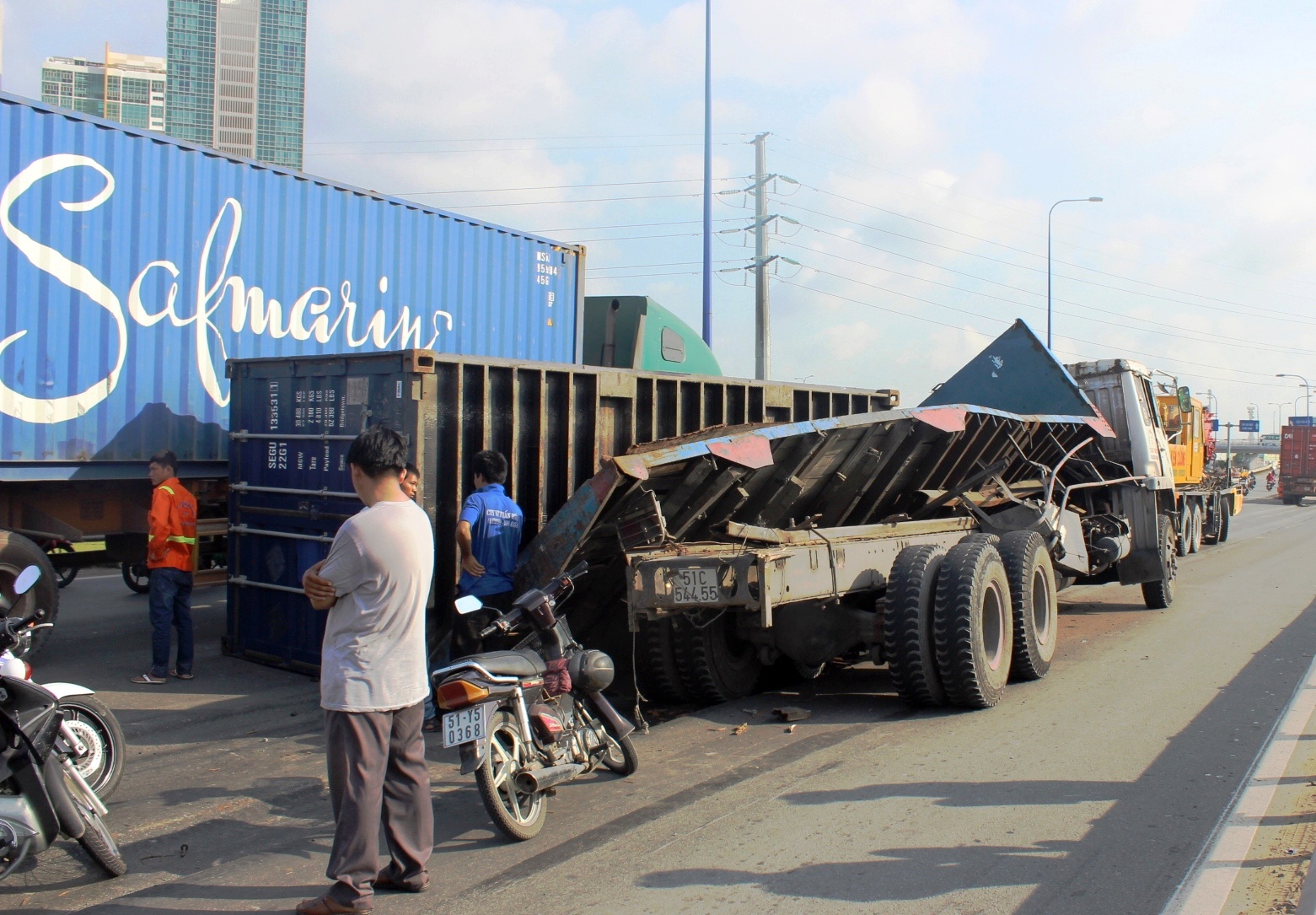 | Thời điểm trên, tài xế Võ Văn Nam (26 tuổi) điều khiển xe đầu kéo container lưu thông trên đại lộ Mai Chí Thọ, hướng từ cảng Cát Lái ra xa lộ Hà Nội. Khi còn cách nhánh cầu vượt ngã ba Cát Lái khoảng 100 m, chiếc xe đi vào rãnh lún sâu trên đại lộ nên mất thăng bằng, khiến thùng container lật xuống đường. |