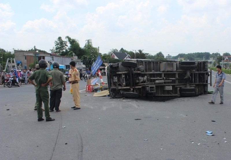 Xe chở bia lao về phía trước và lật nghiêng. Vụ tai nạn khiến phụ xe Lê Văn Đá (32 tuổi, quê Trà Vinh) rơi khỏi cabin, đập đầu xuống đường tử vong tại chỗ.