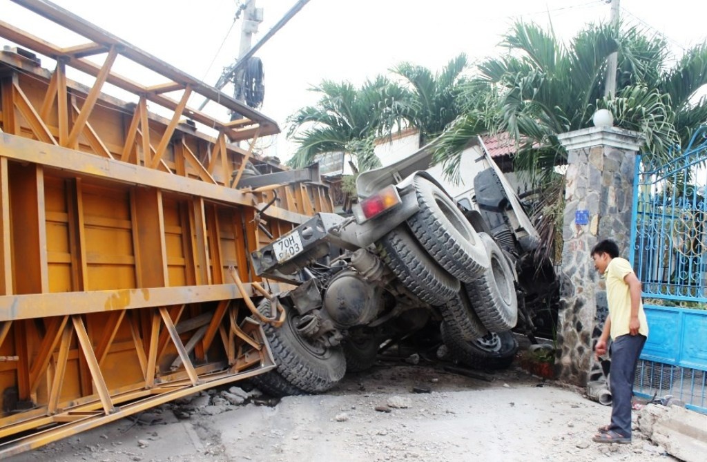Khi qua cầu vượt Củ Chi khoảng 100m thì xe gặp sự cố nên xe đâm vào dải phân cách rồi lao thẳng vào nhà dân. Khi đầu xe lao vào đến cổng thì thùng hàng và rơmooc bị lật nên dừng lại và không gây thương vong cho người ở trong nhà.