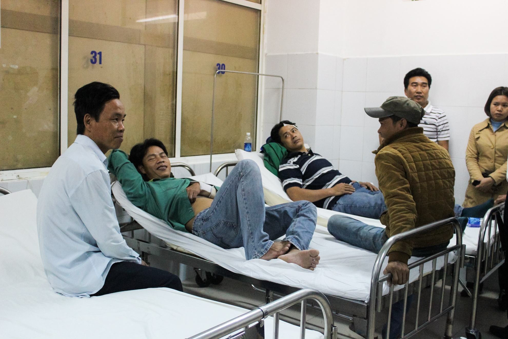 | Các công nhân bị thương đang điều trị tại bệnh viện. Ảnh: Đoàn Nguyên. |