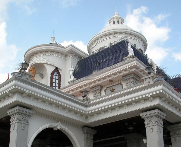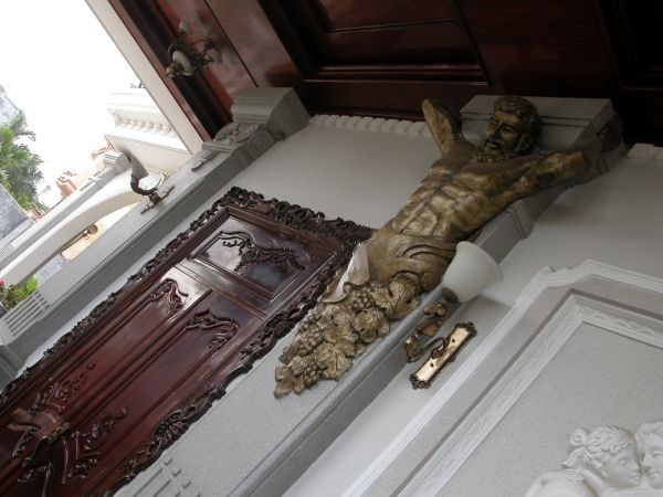 | Ngoài ra, phía bên ngoài các bức tường còn được đặt những bức tượng bằng đồng theo đúng phong cách châu Âu cổ điển. |