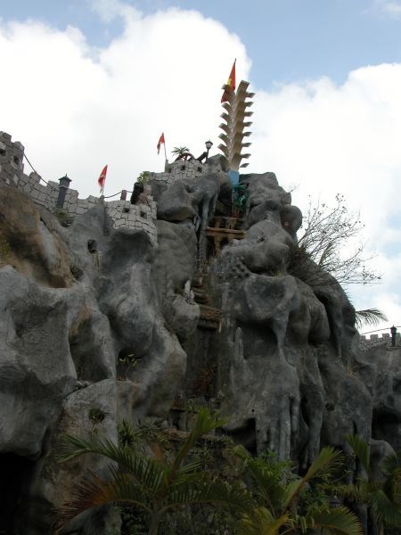 | Một hòn non bộ hùng vĩ được bố trí ở khuôn viên bên ngoài. |