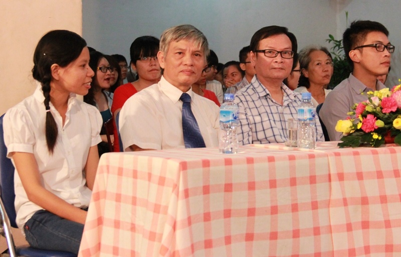 | Nhà văn Nguyễn Nhật Ánh (ngoài cùng bên phải) giao lưu với độc giả. |