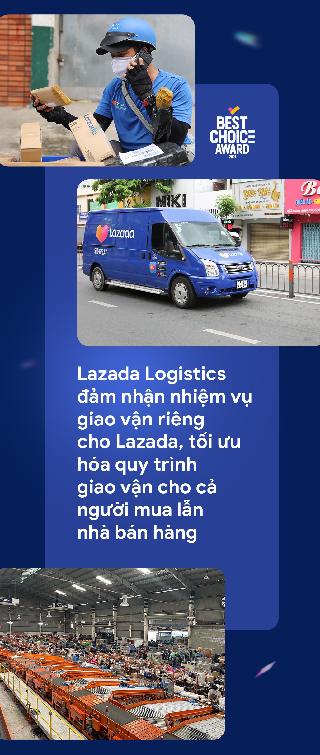 Bên cạnh đó, trong năm qua đơn vị này cũng tập trung nguồn lực để xây dựng hệ thống kho bãi với công nghệ quản lý và quy trình vận hành hiện đại, đáp ứng nhu cầu hàng hóa lưu chuyển lớn mỗi ngày. Thay vì tập trung toàn bộ hàng hóa vào một trung tâm phân loại, Lazada đã thành lập thêm 5 trung tâm phân loại vệ tinh tại các quận Tân Phú, quận 4, thành phố Thủ Đức và huyện Hóc Môn. Điều này giúp chia nhỏ lưu lượng hàng hóa và các đơn hàng được phân loại về kho phù hợp với tuyến trình vận chuyển hơn, làm cho hoạt động vận hành nhanh chóng, thuận tiện. Chiến lược hiệu quả này giúp nhân viên giao nhận của Lazada là những shipper đầu tiên xuất hiện trên đường phố TP.HCM ngay sau khi giãn cách được nới lỏng, đồng thời Lazada cũng có thể đảm bảo hoạt động giao vận diễn ra thông suốt trong giai đoạn dịch bệnh căng thẳng. Đây là một trong những điểm sáng của sàn TMĐT này trong năm qua.