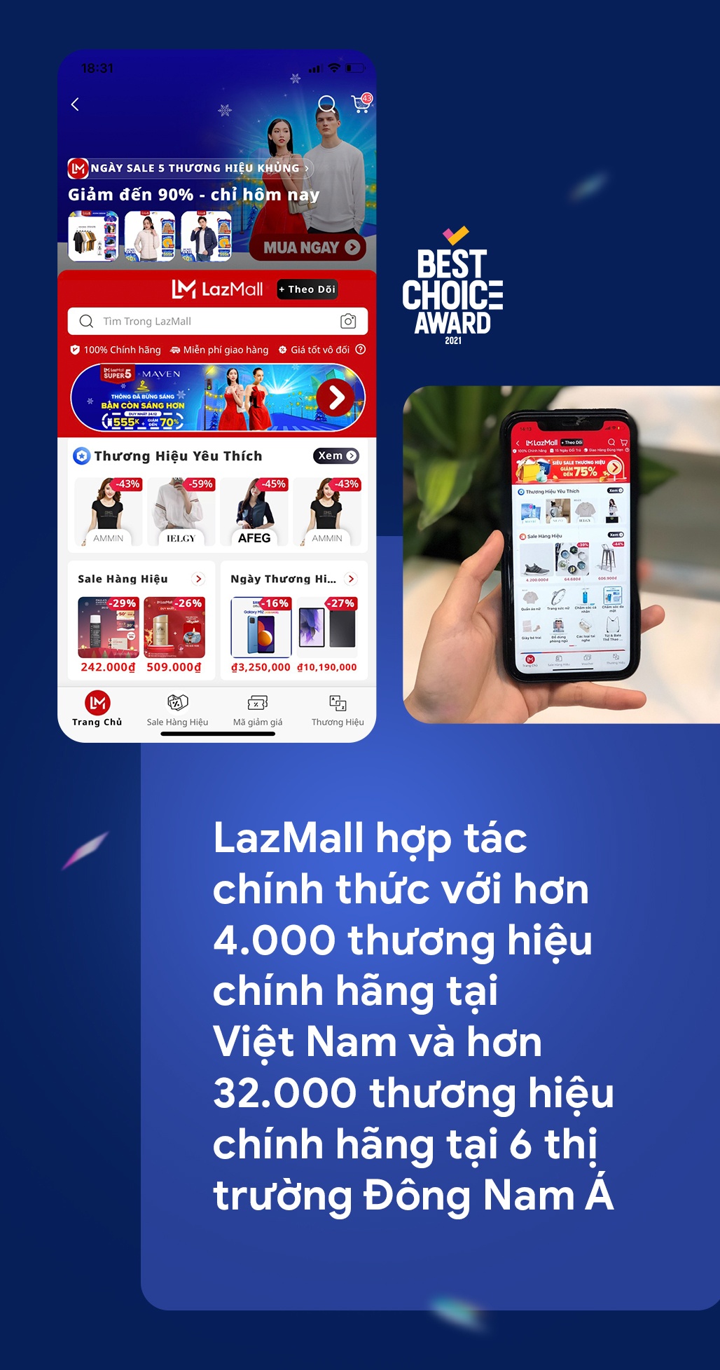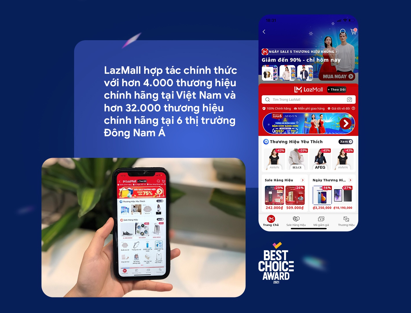 Sau hơn 3 năm hoạt động trên khắp 6 thị trường trong khu vực, LazMall - hệ thống gian hàng chính hãng của Lazada - liên tục tăng trưởng với tốc độ tích cực, trở thành trung tâm mua sắm trực tuyến hàng đầu Đông Nam Á, kết nối người mua sắm với hơn 32.000 thương hiệu chính hãng chất lượng cao. Trong năm qua, Lazada Việt Nam tiếp tục xúc tiến, mở rộng mối quan hệ với các nhãn hàng, từ thương hiệu quốc tế cho đến nhãn hiệu trong nước chất lượng để đẩy mạnh hệ thống gian hàng chính hãng.