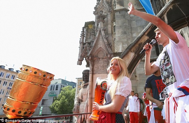 | Trong khi đội trưởng Philipp Lahm lại ôm khư khư chiếc đĩa bạc Bundesliga. |