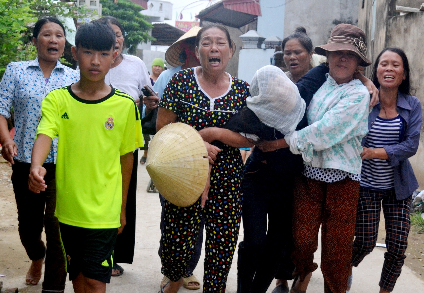 Mẹ em Đức là chị Đặng Thị Oanh (40 tuổi, trùm khăn trắng) ngất xỉu sau nghi lễ. Chị được hàng xóm dìu về nhà. Không ai cầm được nước mắt. Trưa cùng ngày, chính quyền xã Hưng Lộc đã đến thắp hương, chia buồn với các gia đình.