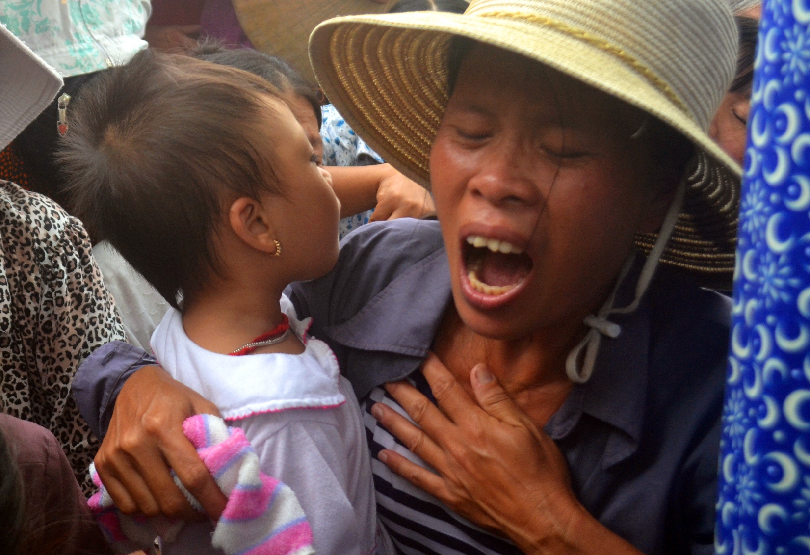Trong đó, có những người vợ ôm con nhỏ nấc nghẹn, gào khóc gọi tên chồng.