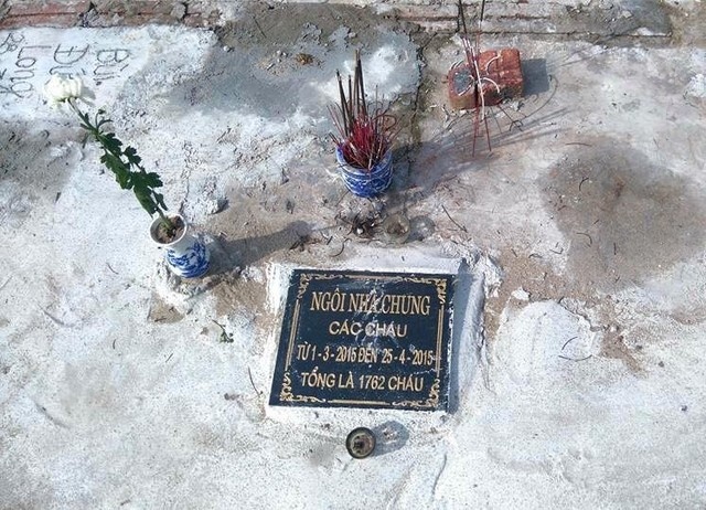 | "Ngôi nhà chung" bên cạnh vừa mới được đặt bia. Đó là nơi an nghỉ của 1762 sinh linh bé nhỏ. Những hài nhi trong ngôi nhà chung này được tiếp nhận từ ngày 1/3/2015 - 25/4/2015. |